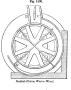 An upright machine, designed for drilling a series of holes without changing the position of the work. In Thorne, De Haren & Co.'s, the arm a carrying the drill and its gearing is rotatable on the collar b surrounding the upper part of the fixed post c, on which are the driving-pulleys. The counter-shaft is at the base, and the belt by which they are driven is changed from the loose to the fast pulley and rice versa by the belt-shifter d. The table e is slotted at top and sides, and can be raised or lowered to suit the work, by a pinion working in the rack f and operated by the crank g. The drill may be traversed back and forth on the arm a by a rack and pinion, and is provided with automatic changeable feed-gears; or the feed motion may be controlled by the hand-wheel h through a worm on its shaft, which gears with a worm-wheel whose shaft carries a pinion meshing with the feeding-rack i. See also horizontal lathe; boring-machine; drill.| Radial-piston water-wheel. |